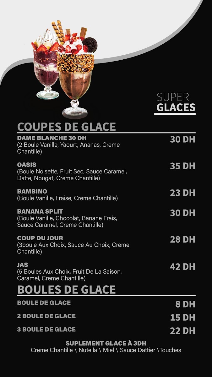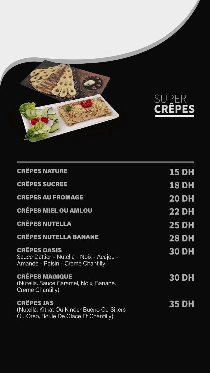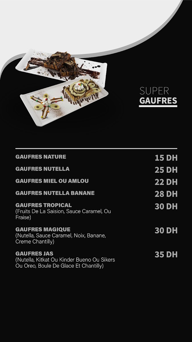 While the emphasis is on caffeinated and non-caffeinated beverages, light food options including items like crêpes and waffles are indicated on the menu; however, availability may vary. Customers typically use the menu for quick ordering of drinks and light bites suitable for casual consumption.